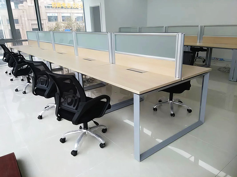 青岛办公家具 随着现代写字楼的发展趋势变化,越来越注重简易风格的设计,现代风格的设计,以前那种油漆办公家具很少再采用,隔断的办公桌组合,例如这个http://www.qingdaobangongjiaju.com/productshopxp.asp?id=181,有的公司还是觉得不是太现代,不够简洁,所以就近两年来,青岛出现了如上图中得案例家具,钢架和颗粒板组合!显得空间宽敞通透,特别适合现代装修风格的写字楼,适合80后的审美。这个案例的钢架是广东产的,内三角,管壁加厚,相当敦实,桌子下面有专业的走线盒!桌子中间是桌上屏!